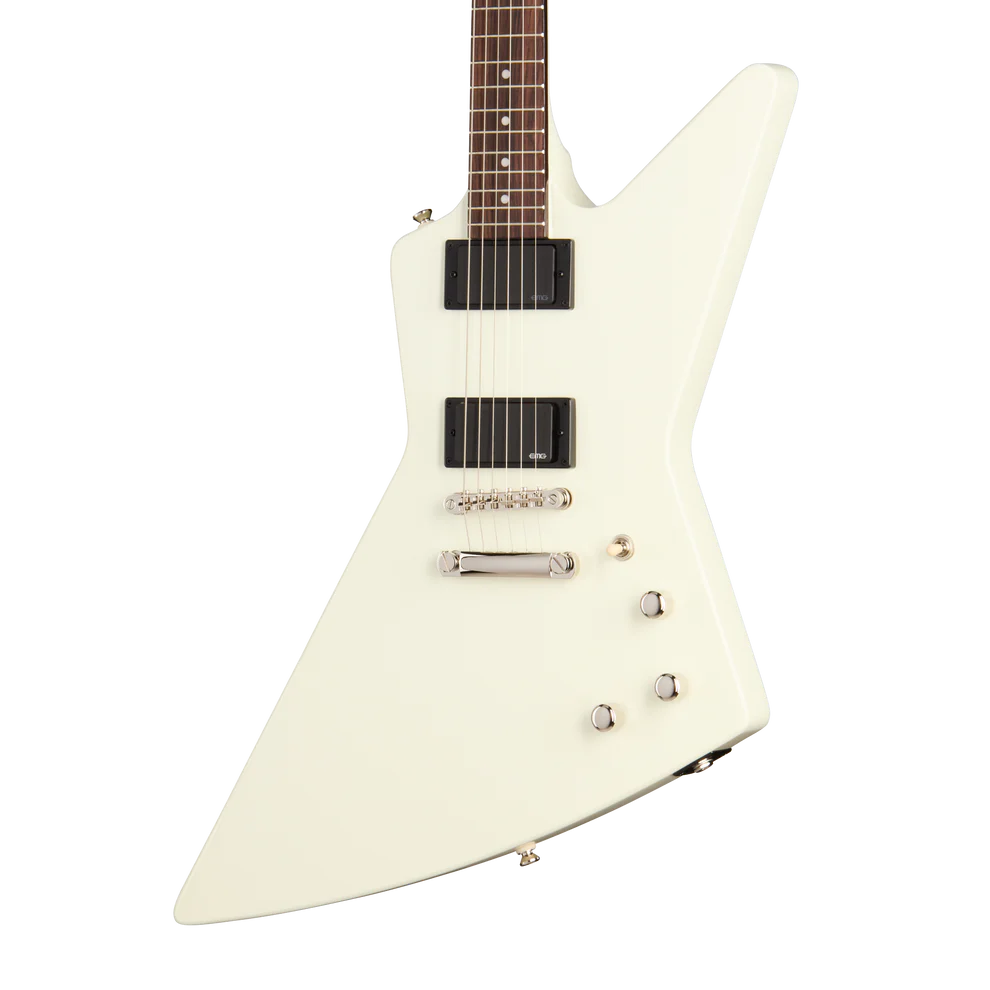 Explorer headstock with mini die cast tuners and Epiphone logo in gold silkscreen